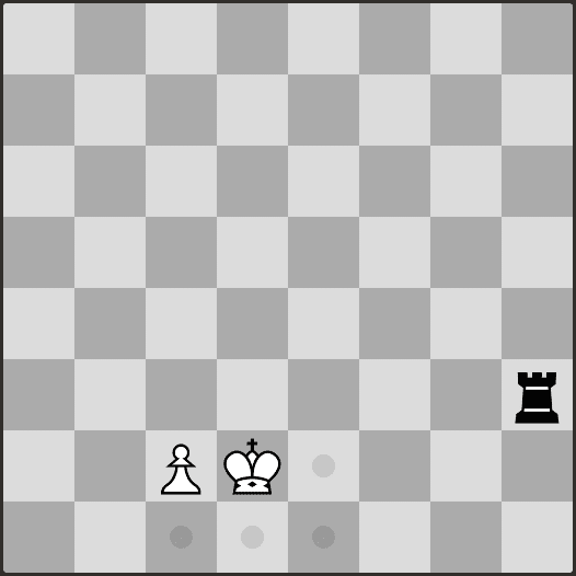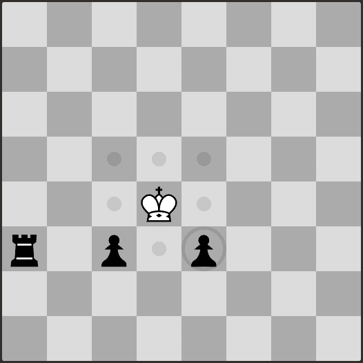 Puede moverse a cualquier casilla contigua que no este siendo atacada por una o más de las piezas del oponente. Se considera que las piezas del oponente atacan sobre una casilla, incluso sí tales piezas no pudieran ser movidas.
