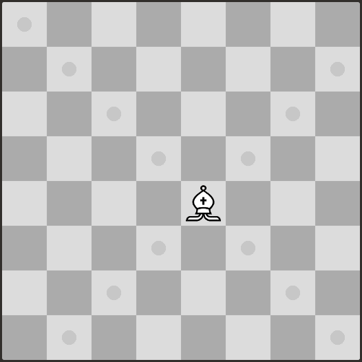 Al igual que la torre, tampoco puede saltar por encima de piezas propias o enemigas, pero