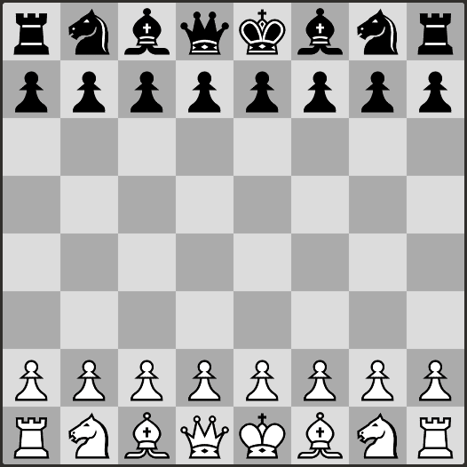 Las piezas se sitúan en las dos filas más próximas a cada jugador. Es decir, las blancas en la primera y segunda filas, y las negras en la séptima y octava filas.